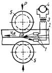 РАДИОЧАСТОТНАЯ СВАРКА - сварка давлением, осуществляемая с местным нагревом соединяемых деталей токами высокой частоты до температуры оплавления тонкого слоя металла на поверхности кромок или близкой к этой температуре с использованием для концентрации нагрева эффекта близости и последовательным сжатием кромок с помощью вращающихся роликов. Нагревающий ток может быть подведен непосредственно от высокочастотного генератора (машинного или лампового), в цепь которого включено изделие, через скользящие или вращающиеся контакты, а также индукционным путем. На рисунке представлена схема радиочастотной сварки труб: 1 — скользящие контакты; 2 — непрерывно движущаяся со скоростью Vсв заготовка трубы; 3 — трансформатор; 4 — ламповый генератор; 5 — сжимающие ролики; Р — усилие осадки; Iсв — сварочный ток.