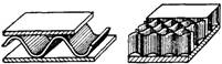 СОТОВАЯ КОНСТРУКЦИЯ — трехслойная металлическая конструкция, состоящая из двух листовых обшивок и поперечных гофров между ними. С. к. изготовляют посредством пайки. На рисунке показаны примеры сотовых конструкций.