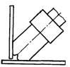 ТОЧЕЧНАЯ ДУГОВАЯ СВАРКА - дуговая сварка, используемая для получения угловых соединений с помощью сварных точек. Это способ применяется при полуавтоматической сварке в углекислом газе плавящимся электродом и при полуавтоматической сварке под флюсом. В обоих случаях используются обычные сварочные полуавтоматы. При точечной сварке в углекислом газе держатель-горелка полуавтомата имеет специальную насадку (сопло-насадка), электрически изолированную от токоведущих частей. Насадка служит одновременно опорным и центрирующим приспособлением. При точечной сварке под флюсом держатель полуавтомата устанавливают с наклоном в плоскости, перпендикулярной оси шва, под углом 40…45° к горизонту, опирая кромки держателя о полки соединения. Затем в держатель засыпают флюс и возбуждают дугу. Как только образуется точка нужного размера, держатель быстро поднимают и, не выключая тока, переставляют на следующее заранее намеченное место. На рисунке приведена схема использования сопла-насадки для точечной сварки в углекислом газе.