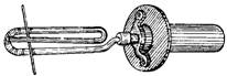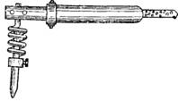 ЭЛЕКТРОДОДЕРЖАТЕЛЬ — 1. При ручной сварке открытой дугой. Инструмент, находящийся в процессе работы в руке сварщика и предназначенный для закрепления электрода и подвода к нему сварочного тока. На рис. 1 приведен электрододержатель для плавящегося электрода. На рис. 2 показан электрододержатель для угольного электрода с успокоительным соленоидом для предотвращения блуждания дуги. Соленоид состоит из нескольких витков медной водоохлаждаемой трубки. Один его конец зажимается в электрододержателе, а на другом крепится электрод. Токоподвод выполнен вне рукоятки электрододержателя. 2. Часть точечной машины, служащая для крепления в ней электрода.