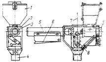 ЭЛЕКТРОЗАКЛЕПОЧНИК — особый вид сварочных полуавтоматов, предназначенный для сварки электрозаклепками, В обычных Э. подача электрода отсутствует. Однако существуют конструкции Э., в которых электрод подается от механизма типа часового, размещенного на их стволе. На рисунке показан электрозаклепочник для сварки под флюсом. Он состоит из корпуса 2 с двумя рукоятками 5, 3 токоподводящего мундштука 8 и бункера для флюса 1. Упорный колпачок 4 устанавливается на изделие, закорачивается электрод 7, при помощи дозатора поворотом рукоятки 3 засыпается флюс. Сварочный ток включается кнопкой 6, а выключается автоматически после естественного обрыва дуги.